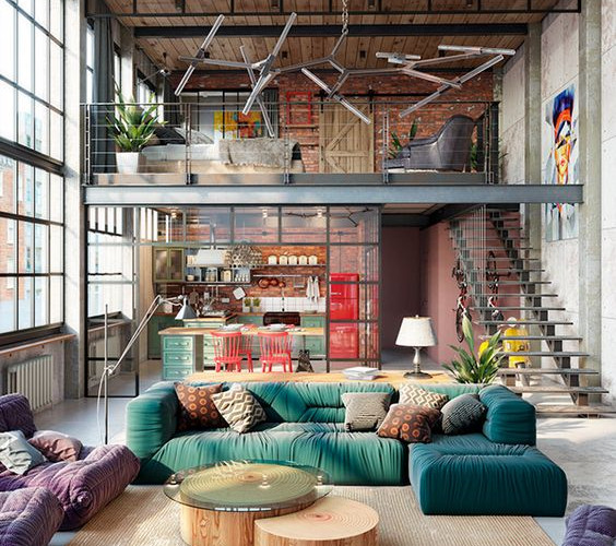 Deja vad o canapea turcoaz intr-o mansarda cu perete de caramida, draperii colorate la ferestrele mari, catifea in combinatie cu lemn, fier si piatra. Si, desi stiam ca se poate, nu simteam acest stil industrial, nu puteam vedea o poveste in acel spatiu. Acum sunt bucuroasa sa pot spune ca pot.